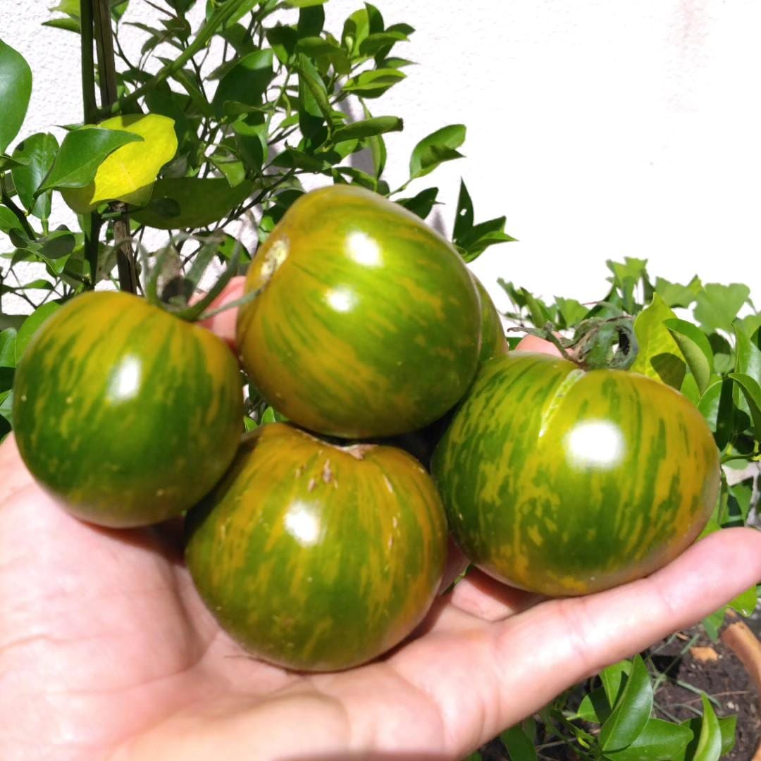 La tomate Green Zebra est une variété de mi-saison, fruits de 80 à 120 g à chair vert émeraude, juteuse, dense, douce et légèrement acidulée, excellente et savoureuse en salade, conserve ou confite.